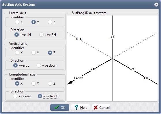 lateral axis identifier to "Y" and "+ve LH"; the