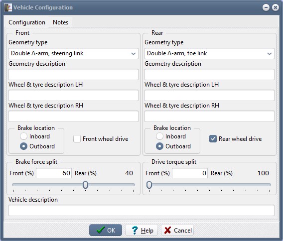 For the front geometry, choose "Double A-arm". The remainder of the items can be left as-is. Click OK.