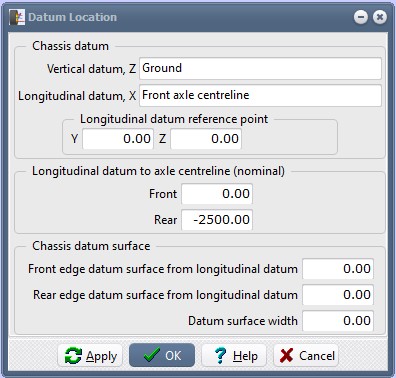 The texts are simply descriptive notes.In the "Longitudinal datum to axle centreline (nominal)" section, set the "Front" dimension to 0.0 and the "Rear" dimension to -2500.00.