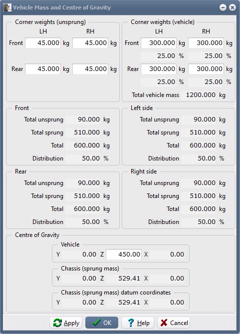 Set the centre of gravity height to 450.00.Click Apply. Notice that the total weights and distribution is updated. Click OK.