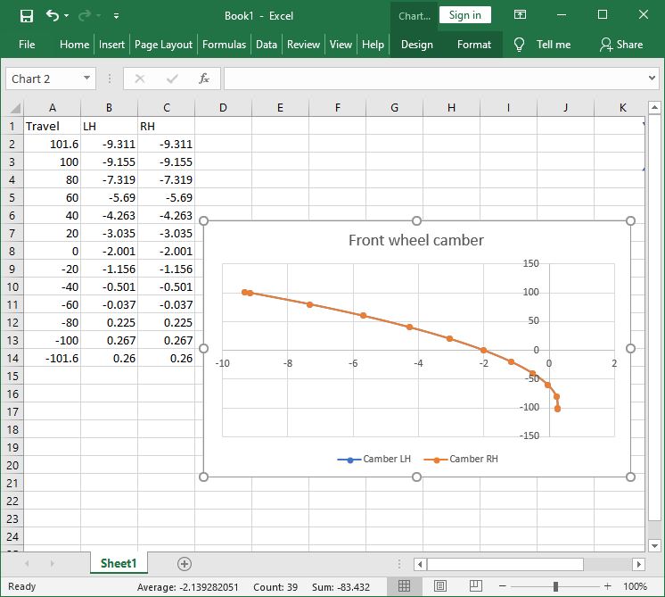 Repeat for Series2 changing the Series name to "Camber RH", the Series X Values to